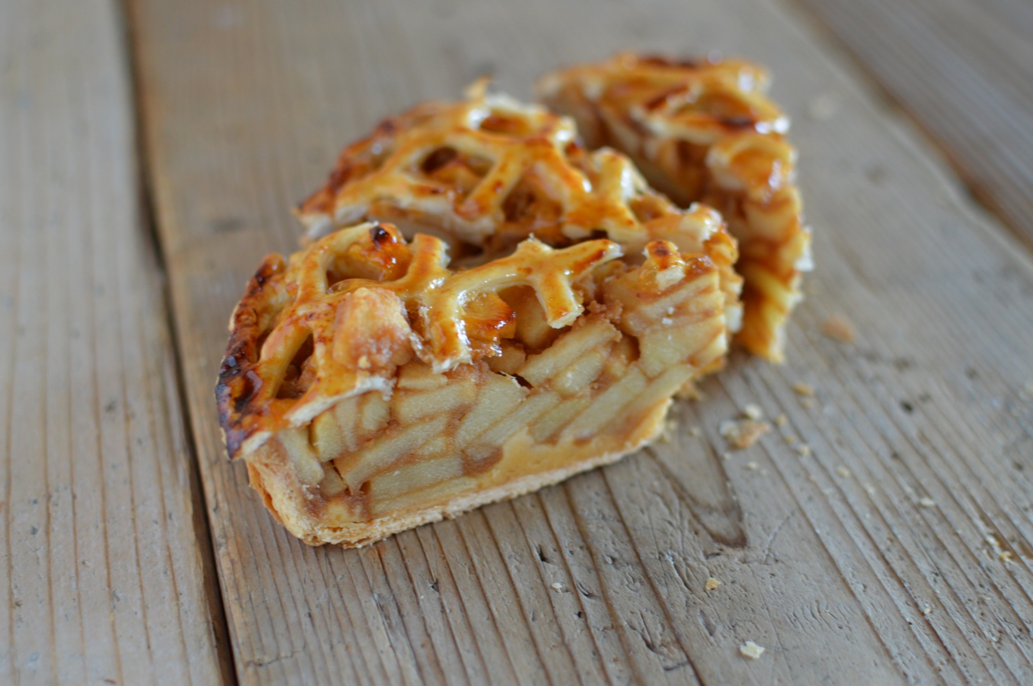 1ピースに小玉リンゴ1個分を使用した贅沢アップルパイ。リンゴは汁気がなくなるまで煮詰めました。