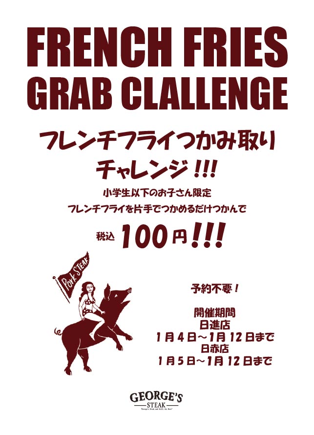 合わせましてGEORGE’S STEAK新年のイベントのご案内。